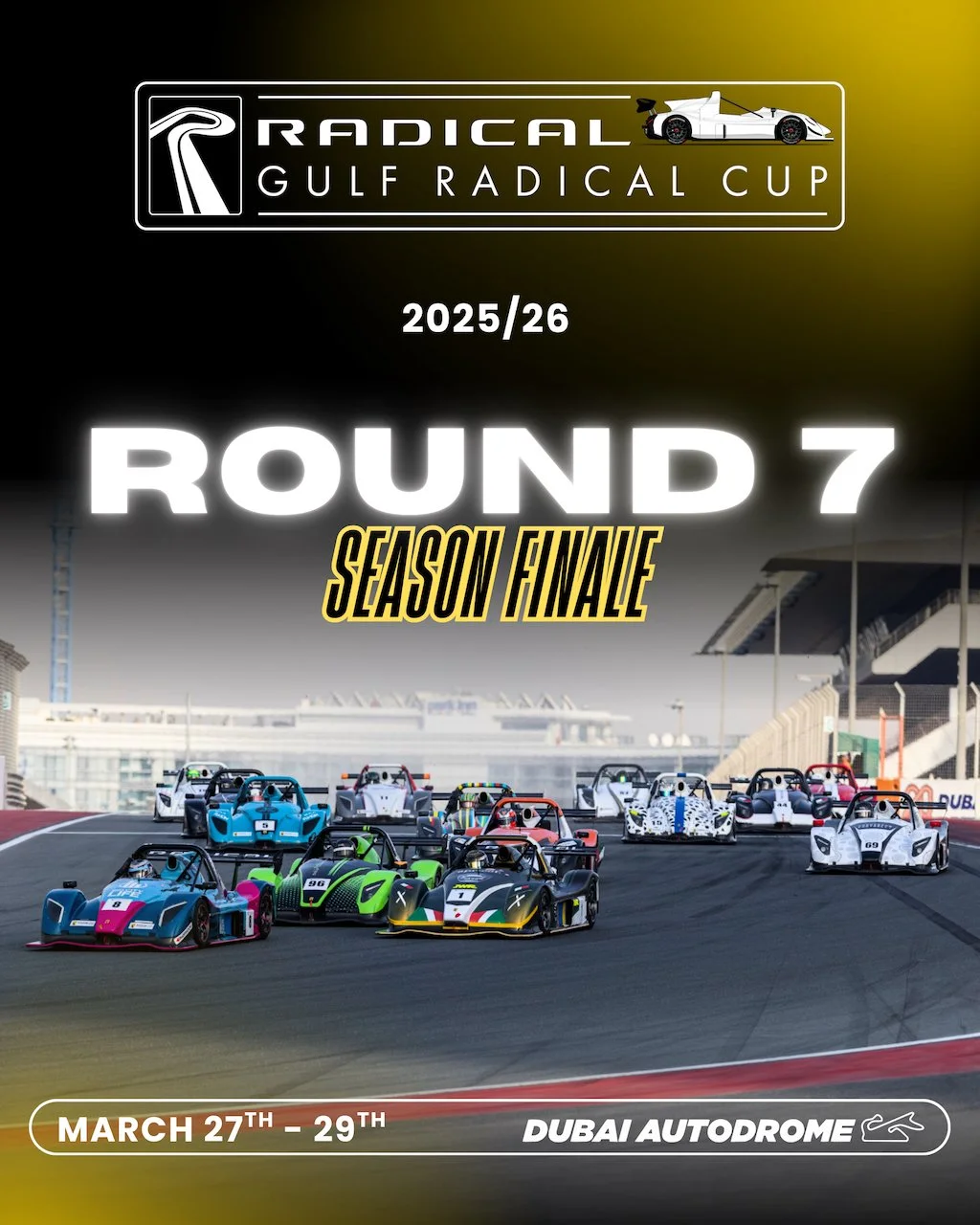 As the 2025/26 Gulf Radical Cup season heads into its final phase, the championship heads back to the Dubai Autodrome National Circuit for Round 7—with both titles edging closer to decision, but still very much alive.